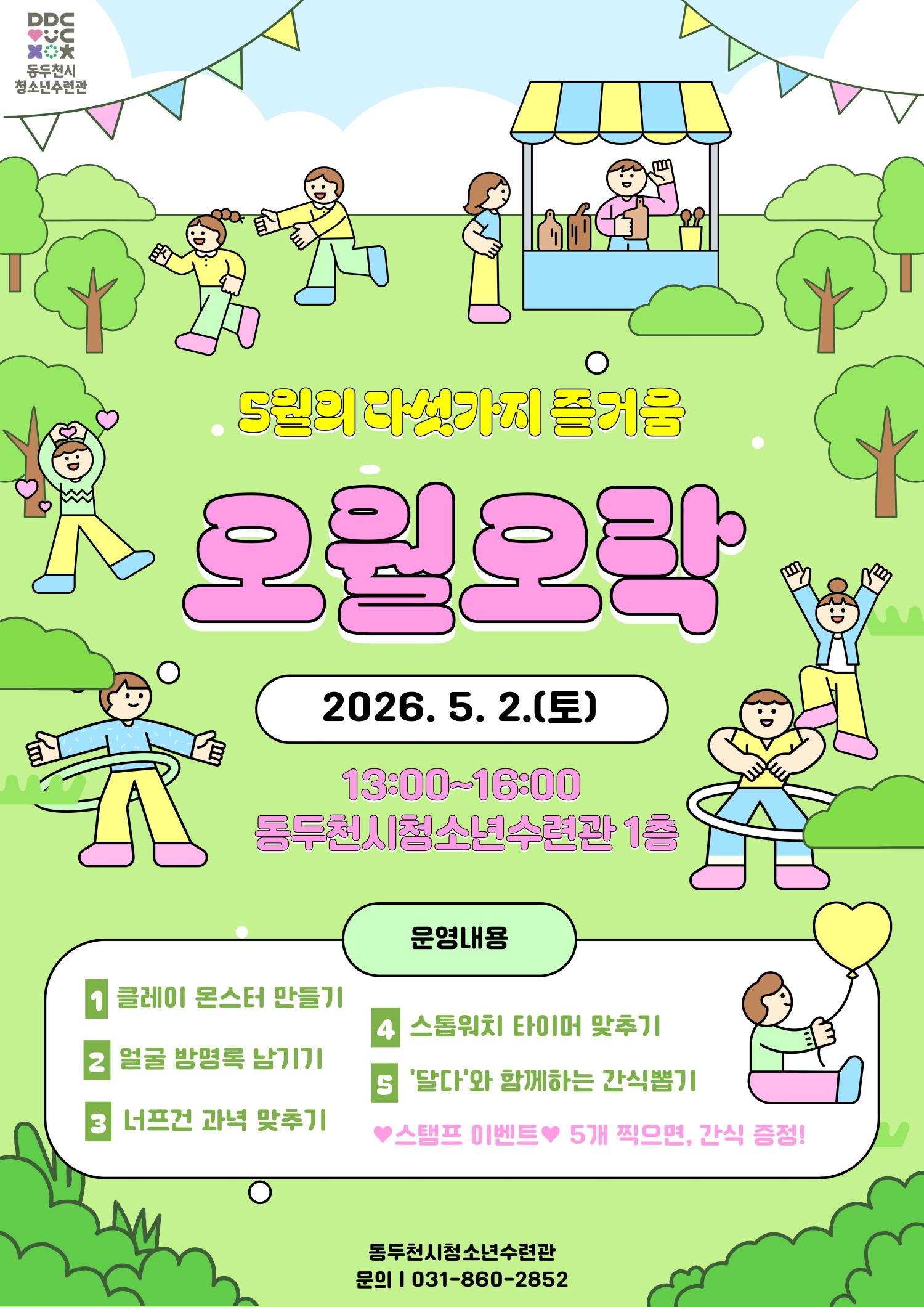 게시물 검색 검색항목선택 제목 내용 검색어 입력 총 게시물 662 개, 페이지 1 / 67 청소년_공지사항 게시물이며, 번호,제목,파일,조회수,작성일,등의 정보를 제공합니다. 번호 제목 파일 조회수 작성일 공지 [안내] 청소년수련관 특별 프로그램 정문똑똑-선생님을 이겨라! 운영 안내 52 2026.04.16 공지 [안내] 청소년의 날 기념 '오월오락' 운영 안내 60 2026.04.15 공지 [공지]2026년 제28회 늘푸른 청소년예술제 개최 알림 및 참여자 모집 안내 320 2026.04.03 공지 [공지] 2026년 4월 청소년수련관 운영일정 안내 209 2026.03.28 공지 2026년도 주요 프로그램 일정 안내 223 2026.03.26 공지 [모집] 2026-2기 정규 프로그램 수강생 모집 안내 364 2026.03.20 공지 [공지] 유료 대관신청 안내 580 2026.01.06 공지 [청소년수련관 대관시스템 변경 안내] 628 2026.01.04 공지 ★프로그램 「감면신청」 및 「환불 신청」 안내 6406 2019.12.03 662 [안내] 청소년수련관 특별 프로그램 정문똑똑-선생님을 이겨라! 운영 안내 52 2026.04.16 661 [안내] 청소년의 날 기념 '오월오락' 운영 안내 60 2026.04.15 660 [공지]2026년 제28회 늘푸른 청소년예술제 개최 알림 및 참여자 모집 안내 320 2026.04.03 659 [공지]2026년 제1기 정규 프로그램 작품 전시회를 개최합니다. 95 2026.03.28 658 [공지] 2026년 4월 청소년수련관 운영일정 안내 209 2026.03.28 657 2026년도 주요 프로그램 일정 안내 223 2026.03.26 656 [모집] 특별프로그램 '팔레트: 봄, 이야기' 모집 합니다! 192 2026.03.25 655 [모집] 2026년 청소년수련관 DDC(씨)네마 4월 영화 관람 참여자 모집 125 2026.03.25 654 [모집] 2026-2기 정규 프로그램 수강생 모집 안내 364 2026.03.20 653 [홍보] 2026년 진로체험박람회 '청소년이 만나고 싶은 직업인 수요조사' 160 2026.03.11 1 2 3 4 5 6 7 8 9 10